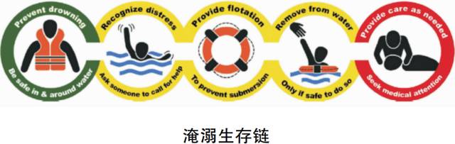 由于改进了急救系统,美国淹溺死亡率已从2000年的每1.45人/10万人降低到1.26人/10万人。欧洲复苏协会提出了淹溺生存链的概念,它包括五个关键的环节:预防、识别、提供漂浮物、脱离水面、现场急救。